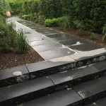 Sunken Garden er for enden af den brede sti med soldaterfliser og derfor er her også brugt Limestone Black natursten som er en skifer grå kalk sandsten.